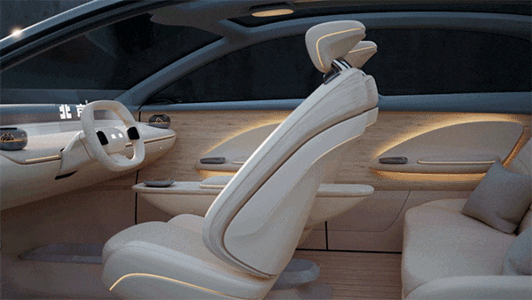 Interiorul vehiculului concept JOY exprimă căldură și eleganță.